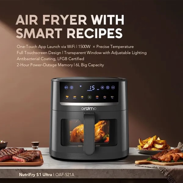 oraimo NutriFry S1 Ultra OAF-521A – Smart Air Fryer with App Control & 6L Capacity